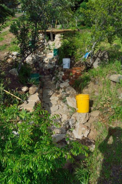 And of course, Pete was busy while we were gone. Picture 9 shows one of these projects, his continued work lining the gully west of the house with recycled concrete. In the area just below this picture, we are planning to build a new bridge across the gully.