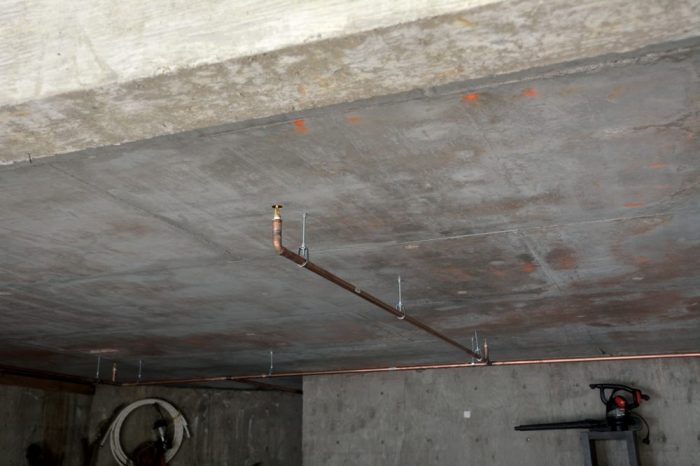 Picture 3 – Because it will be exposed, copper piping was used in the garage. This already has the sprinkler attached.