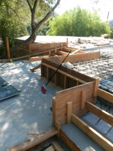 Although we have been away, our neighbor Michael kindly took and provided us with pictures. There are a lot of them, since they represent a week’s worth of work — the workmen did not work last Thursday or Friday because of all the smoke. Since we have been lazy and have not been updating the blog as Michael sent us the photos, we will try a somewhat different tactic here, grouping sets of photos taken on different days that show the same area of the house at different points in time. Below are two pairs of pictures of the deck before and after pouring the concrete. The first pair (Pictures 4 and 5) show the upper deck. The second pair (Pictures 6 and 7) show the stairway between the upper deck and the lower deck (which was poured last time).