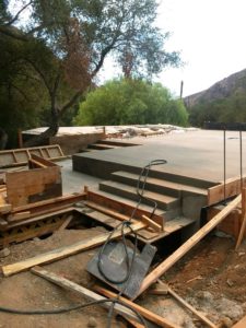 Picture 7 – 2nd set of stairs from the upper to the lower decks (the ones in the background in Picture 6) after the pour, with the roof of the apartment in the background.