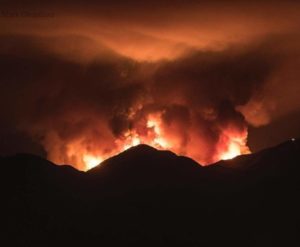 Picture 2 – This was taken from the mouth of the canyon looking up it to Modjeska Peak. There is actually no fire on the peak, what you are seeing is smoke and flames rising up from the area below it.