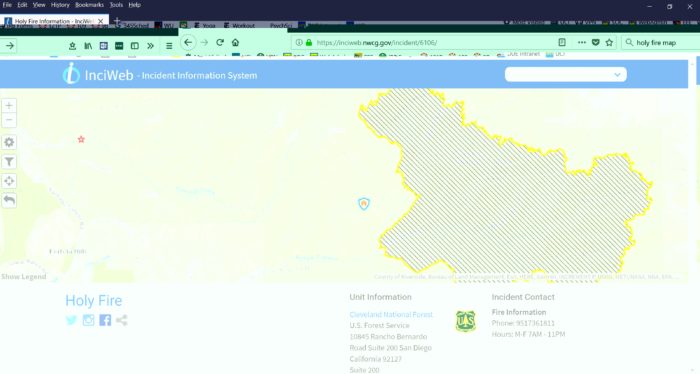 Picture 1 – Yesterday’s map of the Holy Jim fire. The location of our house is shown by the red star.