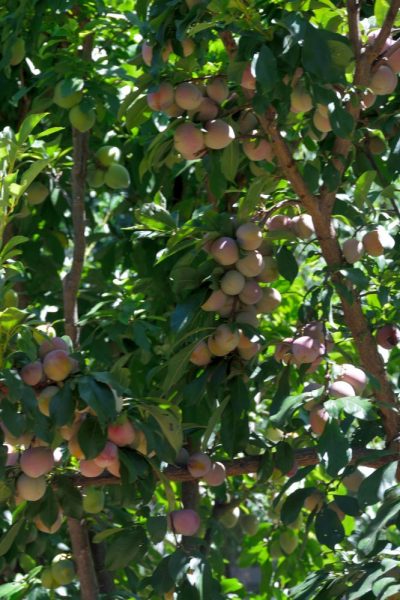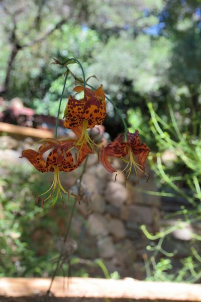 Finally some pretty pictures. Picture 6 shows flowers of Humboldt’s Lily in our terrace beds. This is a species of lily endemic to California named after naturalist and explorer Alexander von Humboldt. It is native to the South High Cascade Range, High Sierra Nevada, south Outer South Coast Ranges, and Southwestern California, growing at elevations from 2,000 feet to 3,900 feet (so usually higher than our property which is at 1020 feet). Pictures 7-9 show that we did not miss our crops of apricots and plums while we were gone, and that one the peaches is ready to bear fruit!
