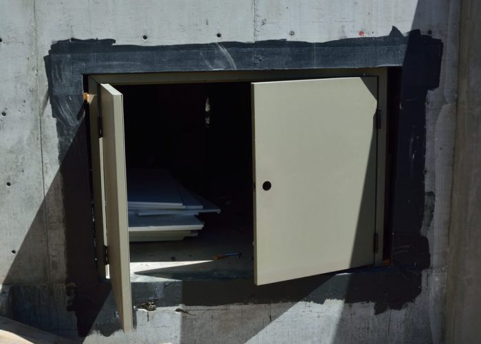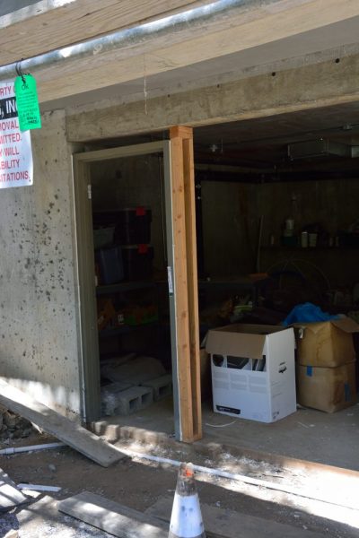 There are two other small things that were done while we were away by the door installers. Picture 4 shows that they installed the door for the area under the deck where the water storage bag will go. Picture 5 shows the door frame for one of the two “people” doors into the garage.