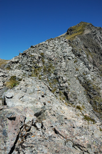 It was only after we had been above the tree line for an hour or so that we finally were able to see the approach to Avalanche Peak; it is along the ridge on the right side of the peak in this photo.