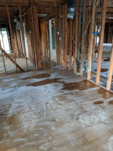 The asbestos people finished up on Friday after removing all the sheetrock with its asbestos-laden drywall mud. So the house is down to its structure. Because they finished a day late, the demolition crew will not come until Tuesday.