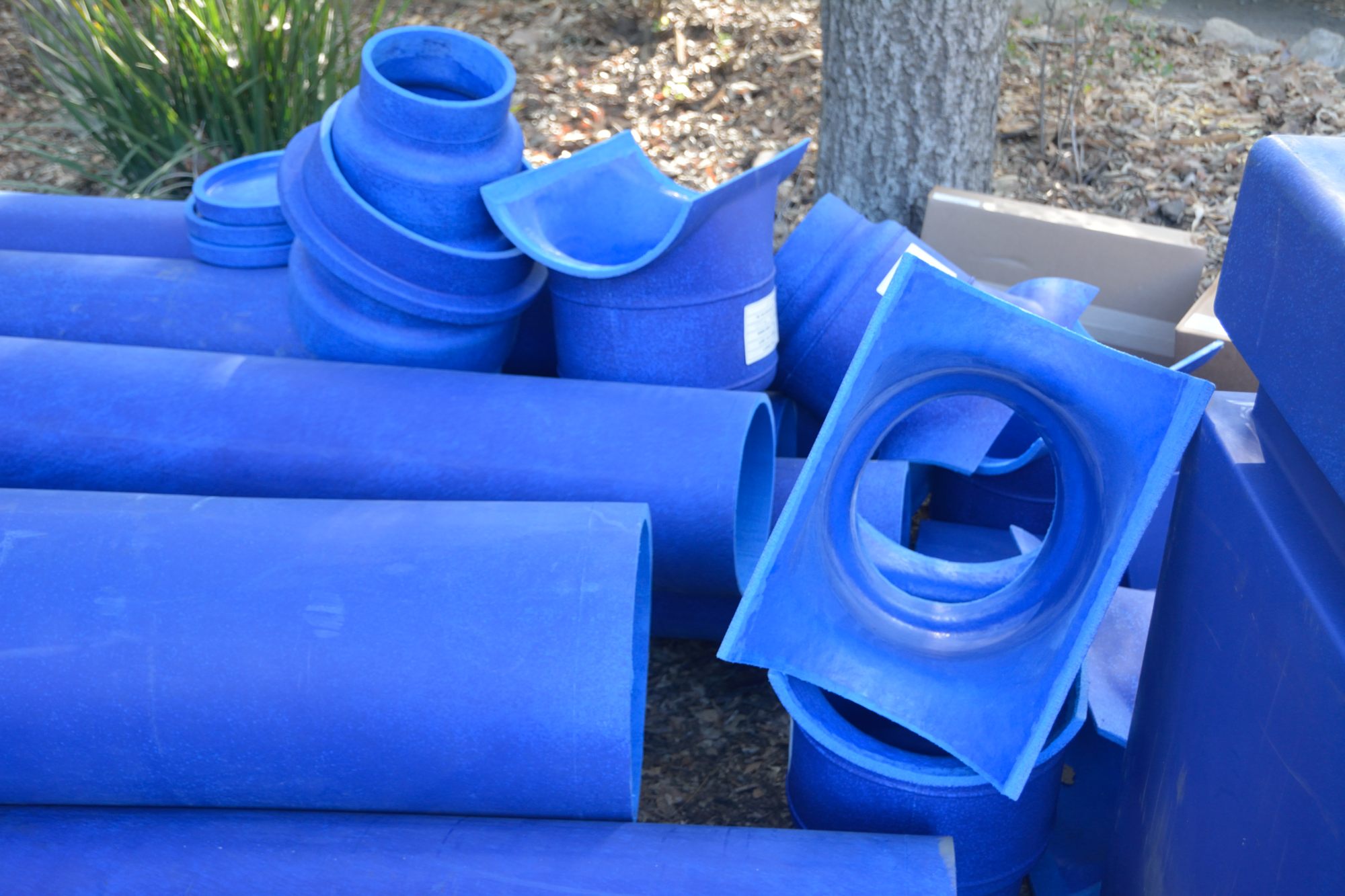 This was the day of the seventh (and possibly the penultimate) concrete pour. However, several other notable things happened today. The blue duct was delivered. As you can see in Picture 1, it lives up to its name! This is a special, extruded plastic duct, that can be buried or run under the slab without degrading or being affected by the pressure of the material on top of it .