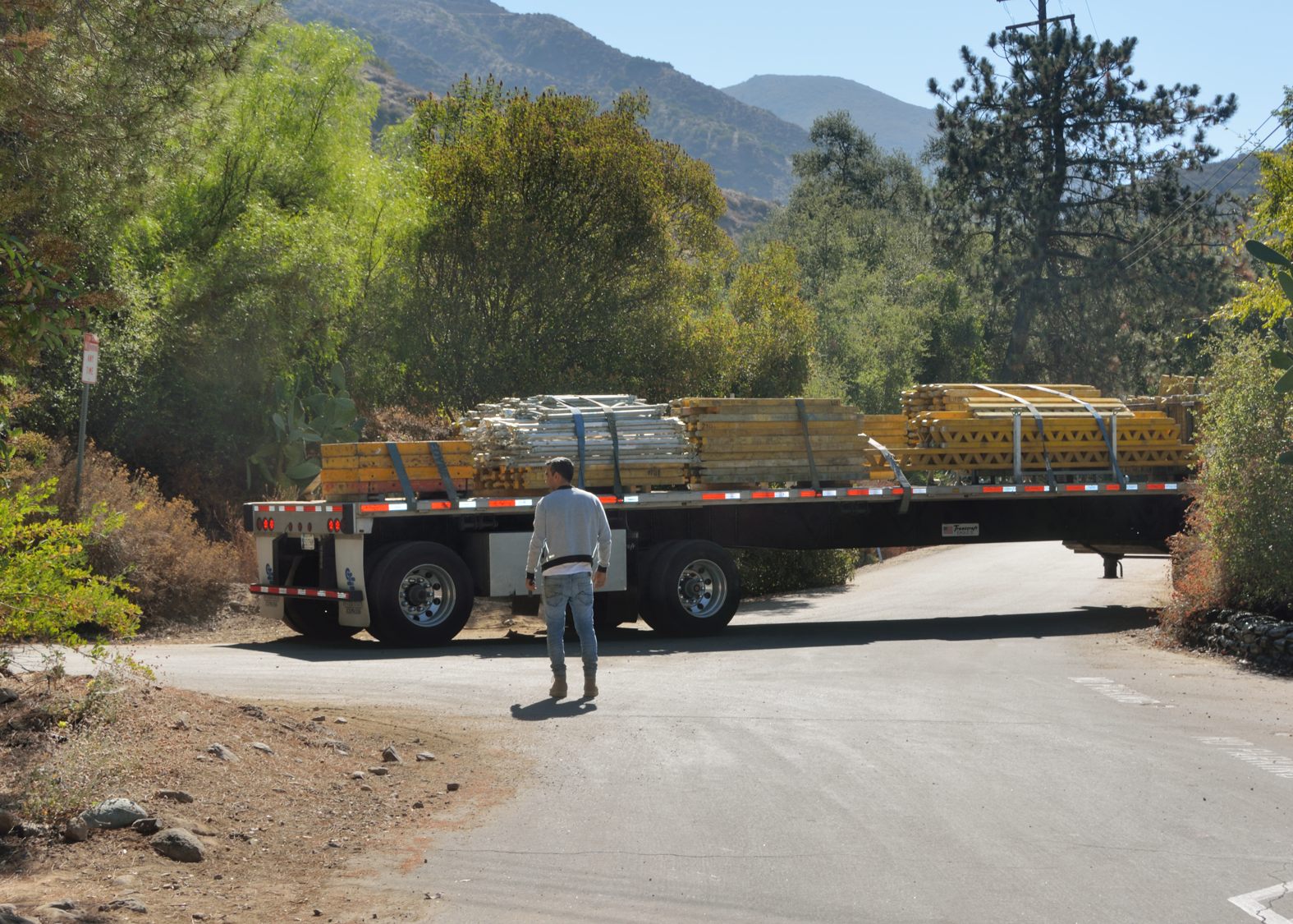 In addition, the scaffolding was all packed onto a long truck trailer (Picture 2). The amazing thing was watching this semi back down the road to the Tucker parking lot and then turn around (Picture 3).