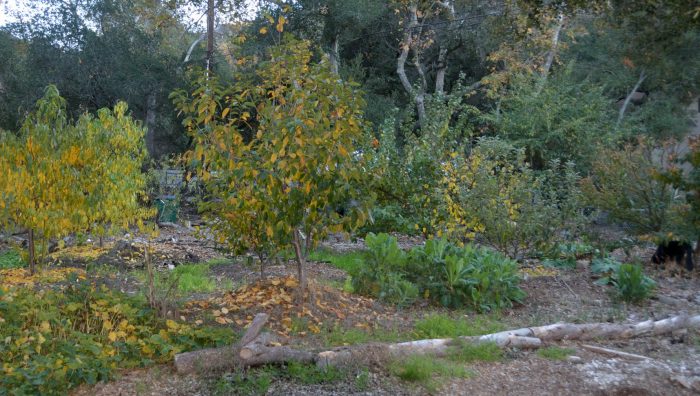 It has been getting cold at night (for here), low 40s to mid 30s. As Picture 4 shows, the chill has caused the leaves in the orchard to begin to turn. Last year, because we did not get enough chill hours (hours that a fruit tree spends in cooler temperatures, ranging from 32 to 45 degrees F), many of our fruit trees did not flower or bear fruit — of course it probably did not help that there were two days of 100 degree whether in late February!). I hope that these cool nights are harbingers of a better fruit year this summer.