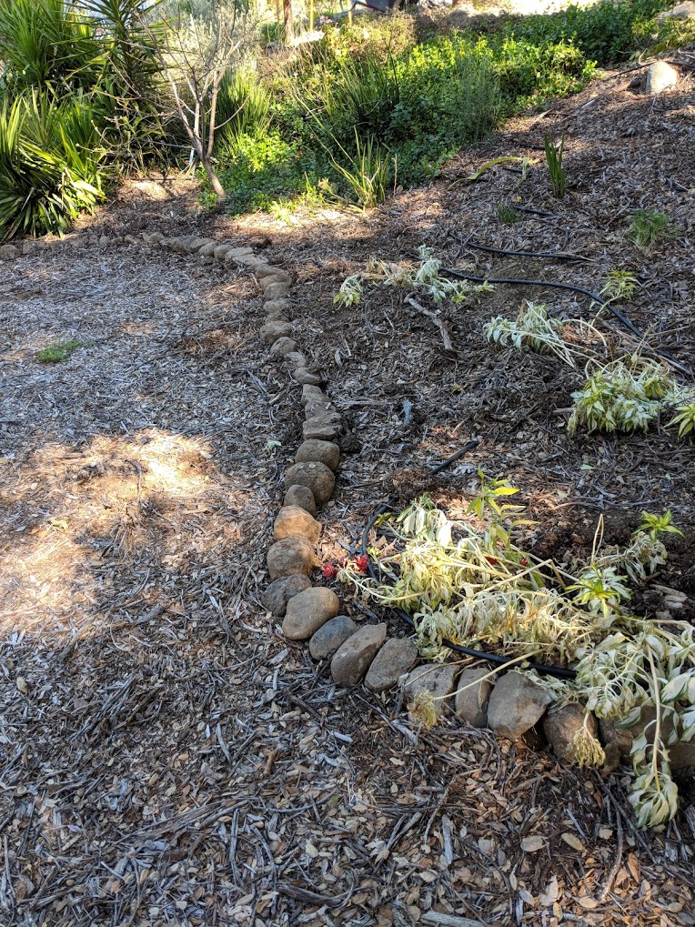 In the meantime, despite pinching the end of his finger so badly last week that he had to have stitches, Ted has continued making rock borders in the front yard during his Spring break this week. Here are a couple of photos