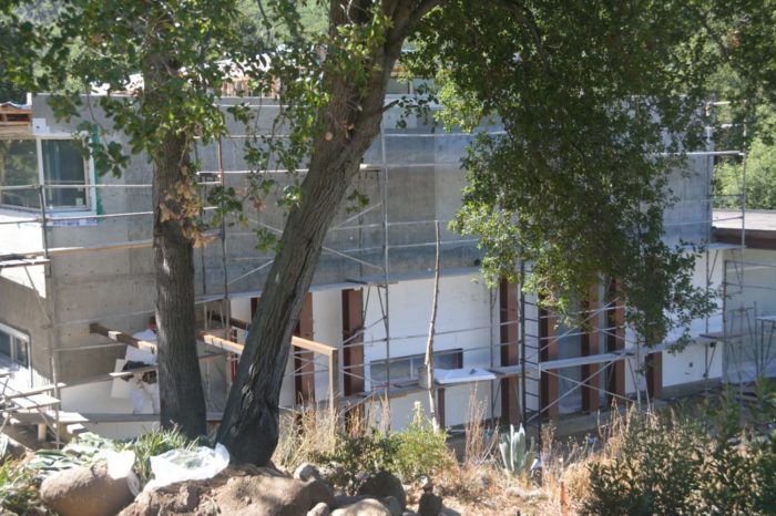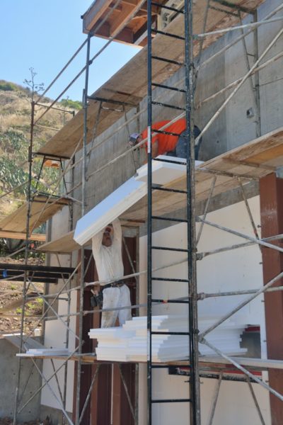 This post could/should have been done last Saturday, but somehow, like so many of the deadlines of this project, that slipped. As Picture 1 shows, the stucco people continued the process of putting up the insulation on the outside concrete walls. Picture 2 shows that they were making good progress on the west wall last Friday. By today that work should be done.