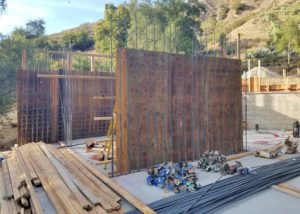 With the forms for the walls under the deck done, today they made good progress on the forms for the walls of the apartment, shown in Picture 1. However, the real excitement of the day is documented in Picture 2.