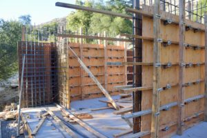 With these issues resolved, the major work of the day was to continue working on the forms for the apartment walls, as shown in Pictures 1 and 2 below. This work needs to be finished on Monday, so that they can have an inspection on Tuesday, and pour concrete next Wednesday.