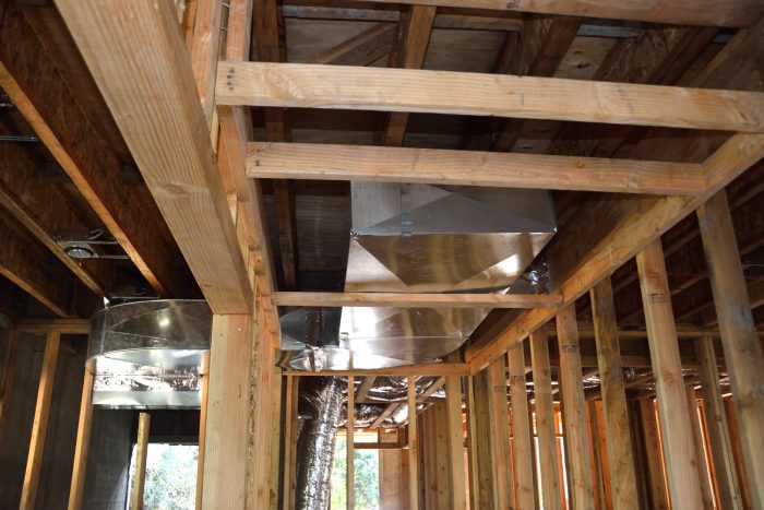 Picture 5 – Rigid metal, return air duct for the first floor in the ceiling of the laundry room (on the left) and the pantry (on the right).