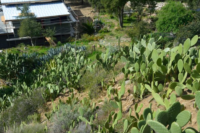 Picture 12 – Hillside where the cactus that Pete planted 2 years ago is now well established, stabilizing the hillside and acting as a fire break. The house below is at the bottom.