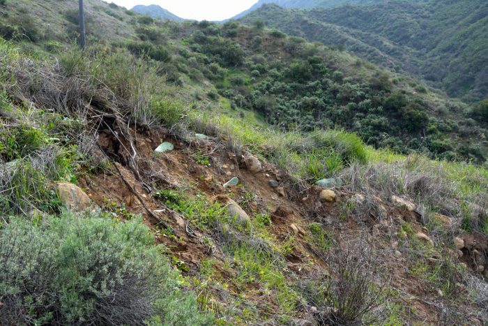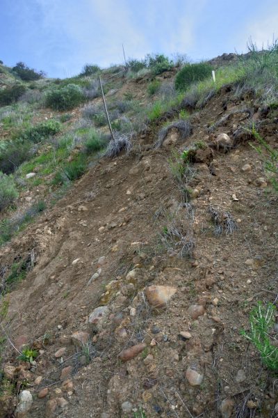 Picture 11 – Area of the upper ridge where the topsoil released from the hillside in last month’s rains.