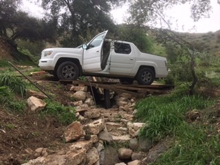 Picture 10 – Here is Pete testing the bridge by driving a load of material across it in the truck.