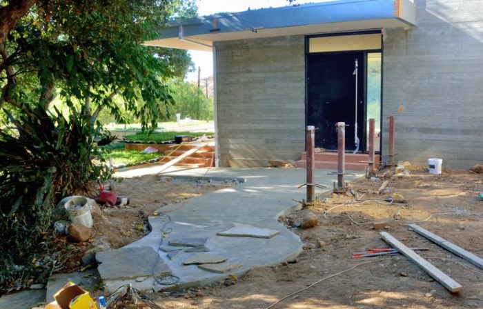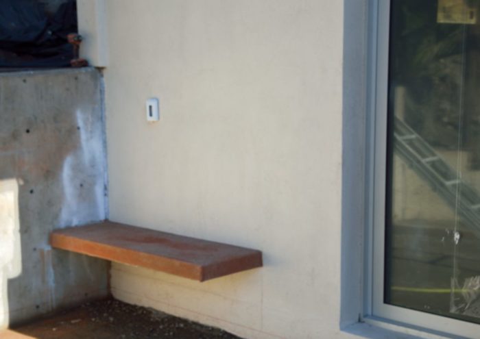 As part of the last cement pour, they created a concrete bench by the kitchen door. This would be a place to remove your shoes before heading in.