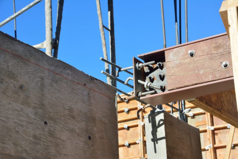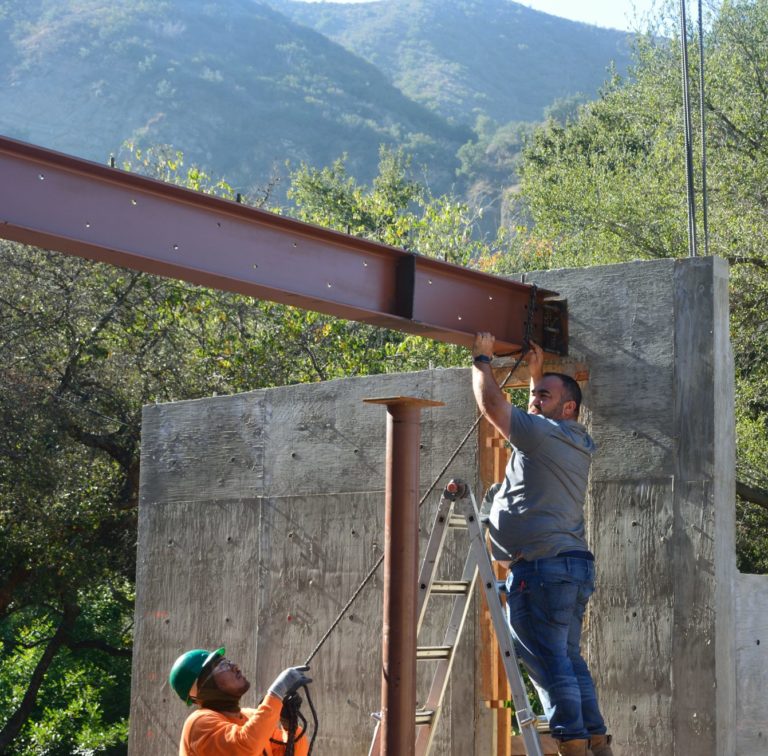 Both of the other issues are related to the steel beam, which we have discussed in previous blog posts, that will support the wall on the east side of the second floor of the house and is in turn supported by two steel posts (the ones that were too short) and connections to walls on the north and south sides of the house. This wall needs so much support because it is to be a concrete wall on the outside of the second floor of the house (all the exterior walls are concrete) but is sitting above the middle of the house not on top of a first first floor wall — so we REALLY want this wall to be well supported! Picture 7 shows the rebar welded to this beam that will connect it to the concrete wall above it.
