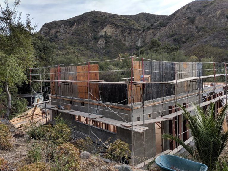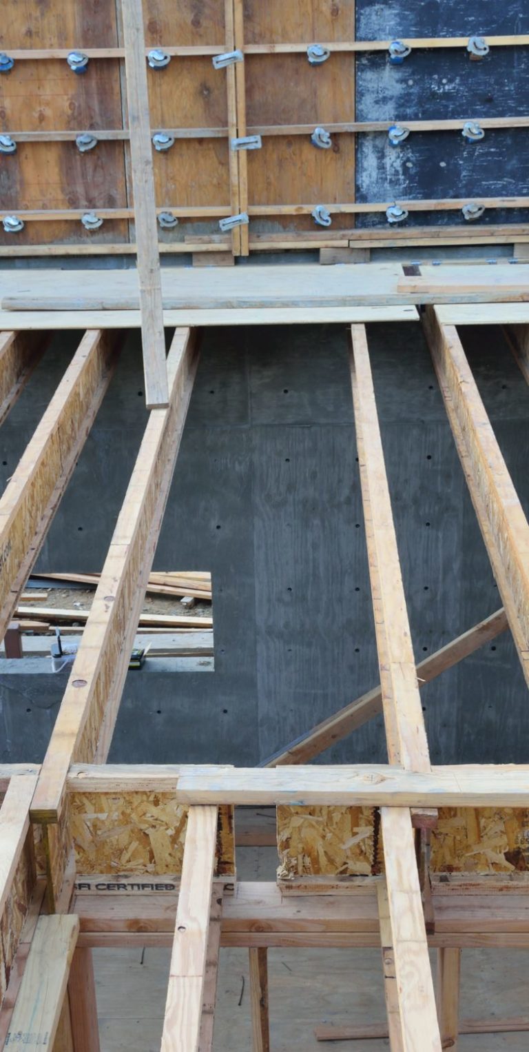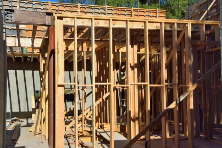 So what has happened at the house since last Wednesday? Three kinds of things: preparations for the final concrete pour this Thursday or Friday (this will be an important milestone in the project!), some framing work, but less than we had hoped, and discovering and fixing some issues that have become apparent as everything starts coming together.