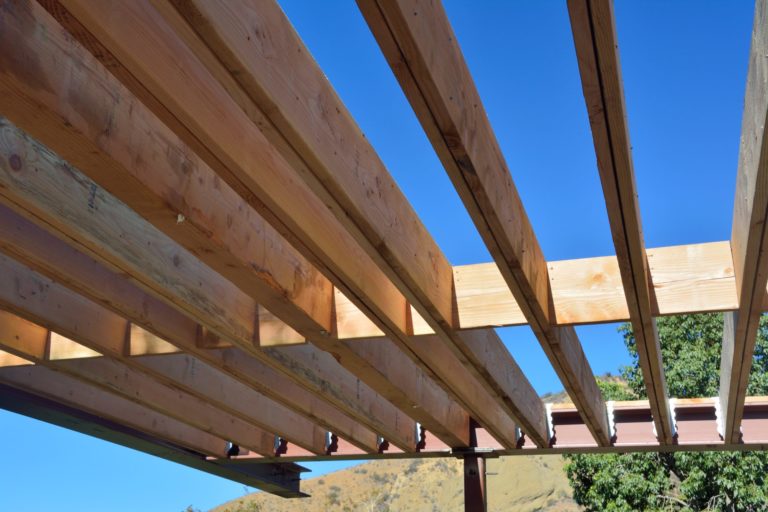Picture 6 shows one of the problem areas. Although the framers initially put up a joist here, the contractor realized that there should be a beam here instead to support a wall on the second floor. Should have been an easy fix except that the laminated wood beam (6 layers of 2×6’s glued together), which was supposedly delivered a week before was nowhere to be found. It is still not clear what happened to it; however, until it is replaced the framers cannot put down the subflooring for the second floor which is why everyone is walking around on sheets of plywood simply laid across the joists.