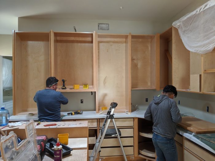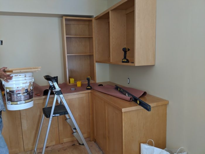 Meanwhile, work has been progressing inside the house. The carpenter has been working on the TV room cabinets and in the kitchen.