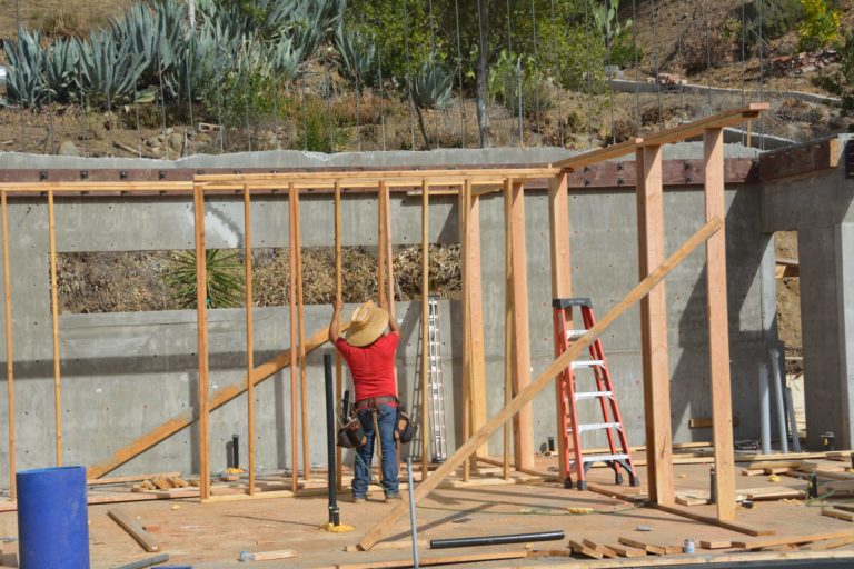 What the contractor had hoped a large crew of the framers would be doing was the walls and second-floor joists in the part of the house not over the slab. (It’s still not clear why the framers felt it necessary to focus on the nailers for the Great Room.) However, as Picture 8 shows, the two framers did start on that too.