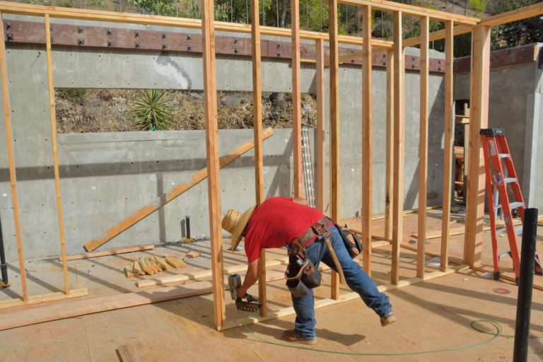 One thing that sped this process was the amazing, compressed powered nail gun that they used (Picture 9) – with one press of the trigger it completely sinks a 12-penny common nail. Picture 10 shows that, by the end of the day, they had gotten many of the walls up.