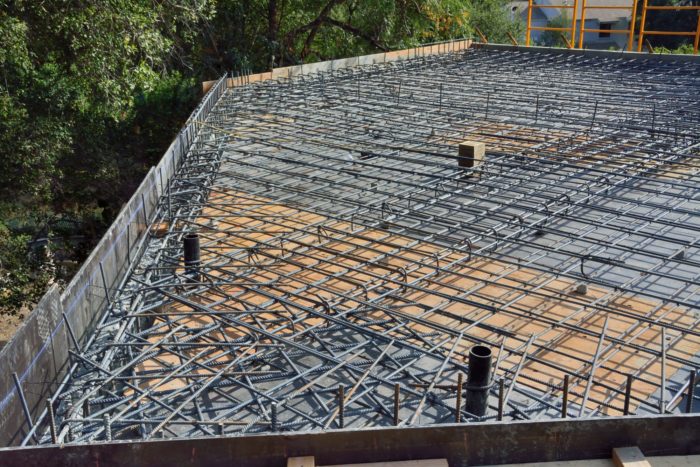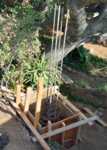 Picture 1 below, shows the completed rebar for the apartment roof and the wooden forms around the edge of the roof. We were appalled because they put these forms up leaning out from the roof — two stories up — rather than get scaffolding.