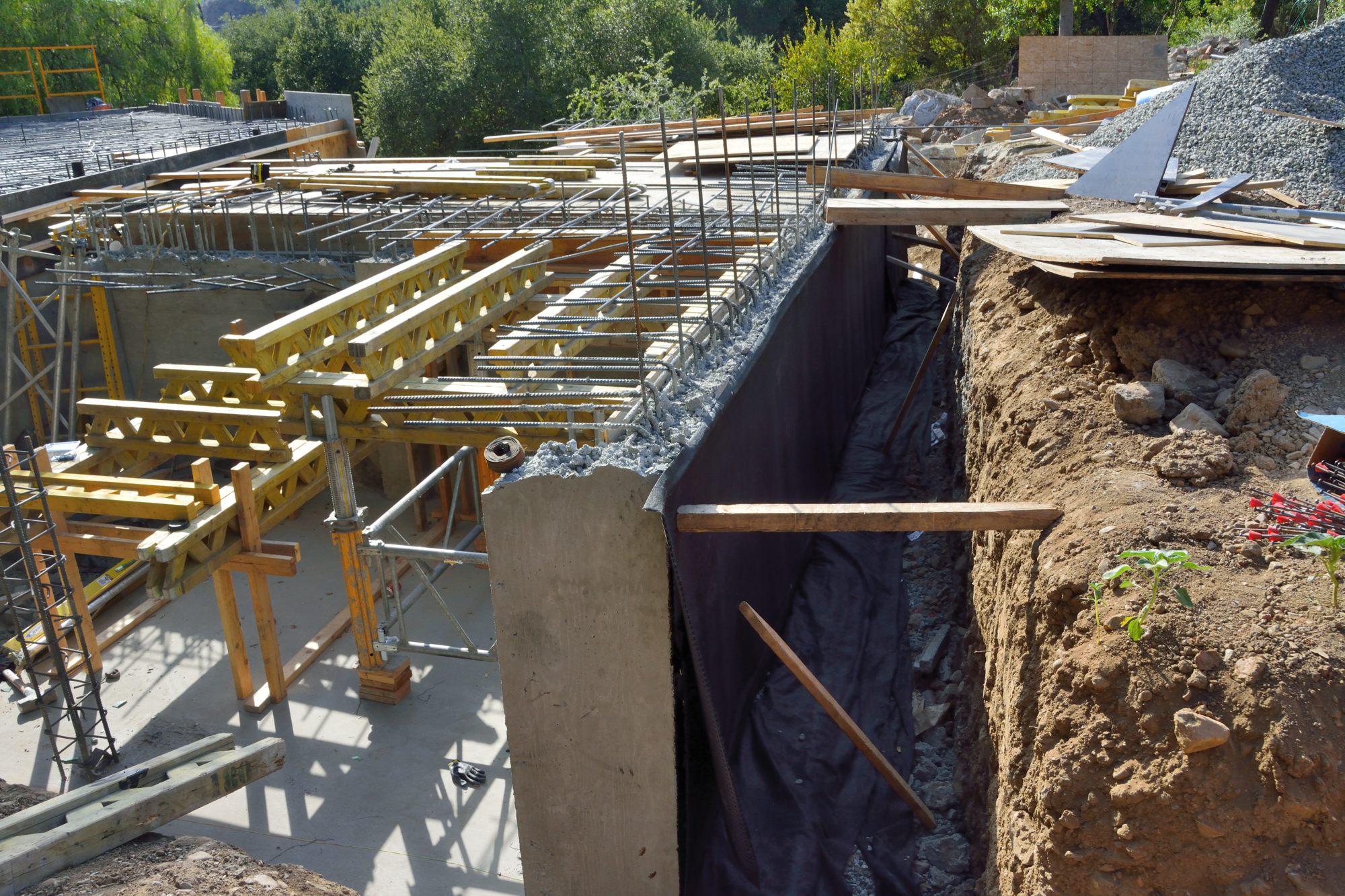 It’s been a few days since the last post on Tuesday. Wednesday was the 4th of July. Since then the changes have been incremental, as they get ready to pour the concrete for the apartment roof Monday morning, and it has been HOT! The high at our weather station on Friday was 111; today it was a balmy 104.7. Fortunately, the high temperature Monday is forecast to be only 91, and the pour is scheduled for 7 AM — pouring concrete in high temperatures can cause problems since the chemical reaction in the curing concrete generates heat.