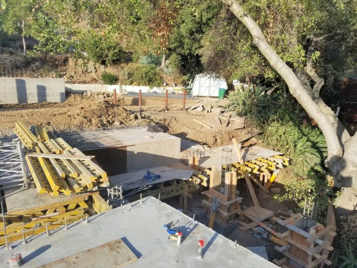 Meanwhile the steel guys were working on building the scaffolding for the lower deck under the tree. (Picture 5)