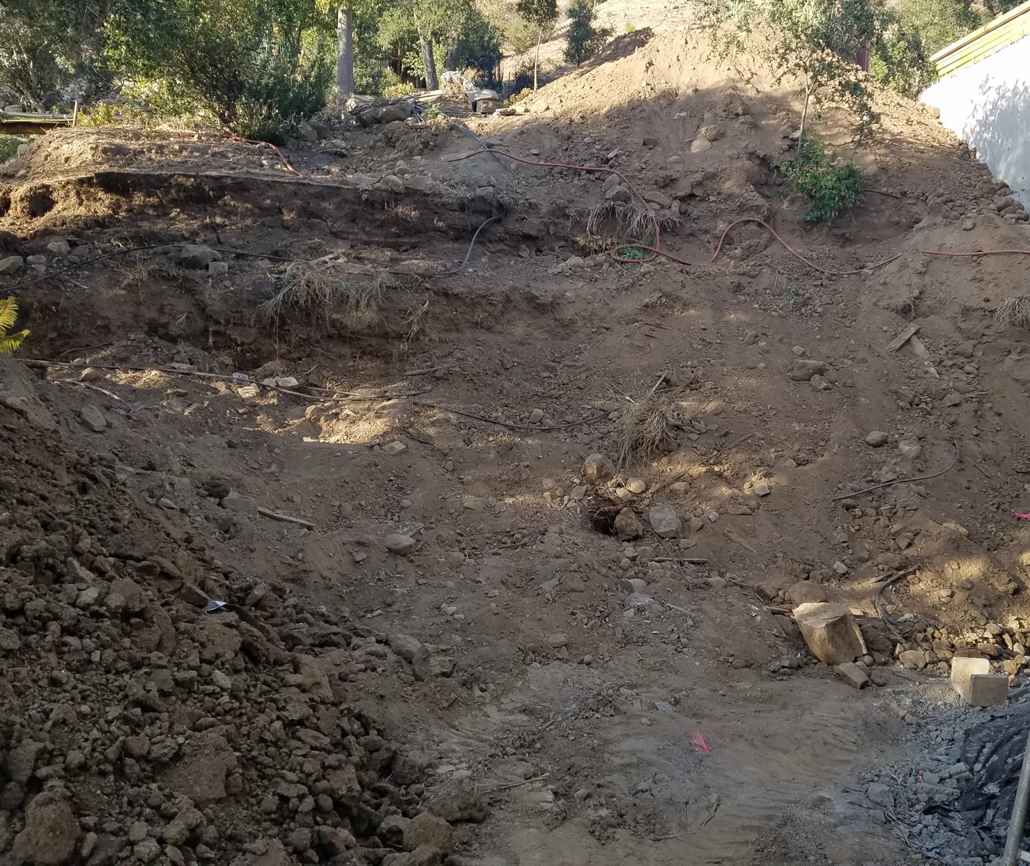 The backhoe driver was digging out more of the crawl space under the house. (Pic 4) He will now be able to start moving dirt down next to the garage now that the blocks are out of the way. They need to build up the ground under where the stairs will go.