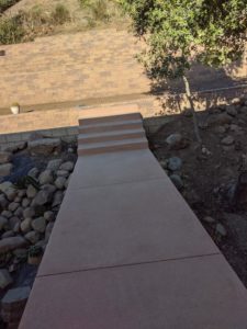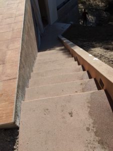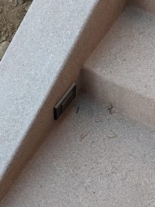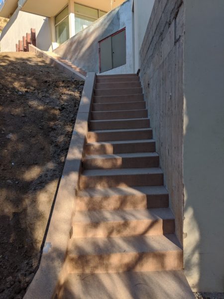The concrete staircases have dried and lightened in color. The long one that goes from the garage to the apartment and then on up to the deck has lights in it.