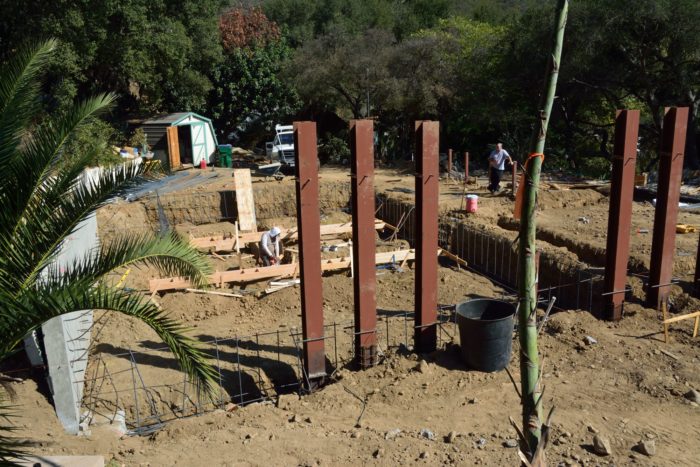 While this work was going on, Ted put in new irrigation for the bananas growing in the gully to the west of the house. Also, we heard that the permit revisions for the forced-air heating/cooling were approved by the County, and Nina picked up the paperwork.