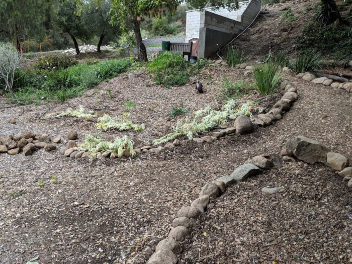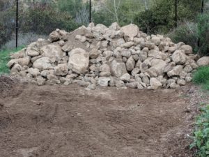 Pete believes in not letting anything leave the property, so the rocks are piled in a big pile near the top of the property, out of the way.